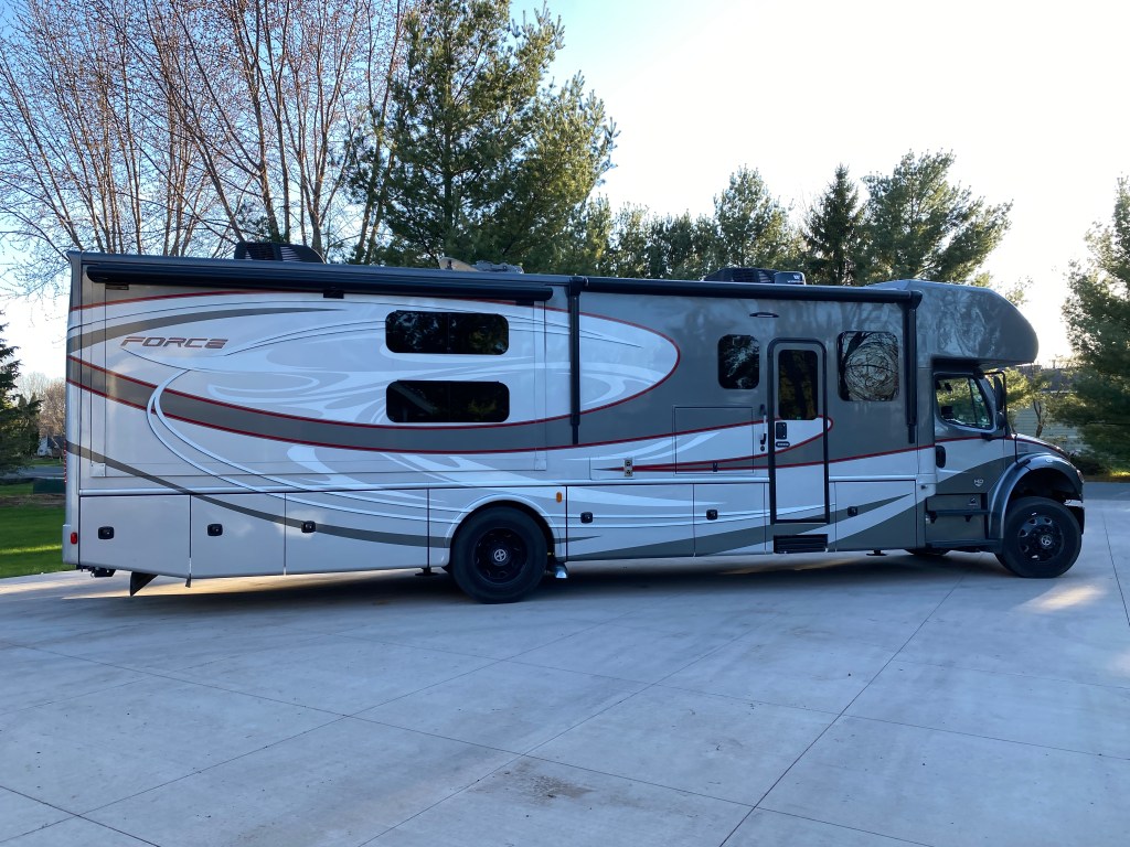 Our home sweet motorhome is a Dynamax Force HD that serendipitously fell into our hands (that crazy story is here!) in April 2022. We’ve been slowly remodeling it and tweaking it to make it our own ever since.